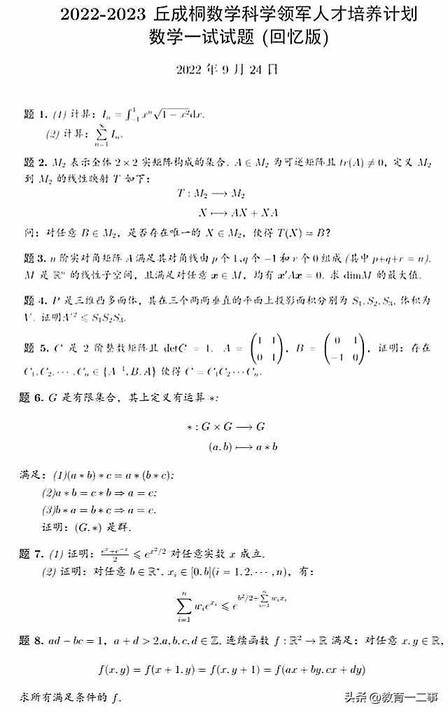2023年清华大学公布的丘成桐数学领军计划第一批认定名单中,有一名学生备受大家关注,他叫何怀沙,来自重庆八中宏帆中学。