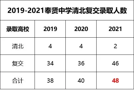 2021年奉贤中学高考录取成绩单:清北2人、复交46人,合计48人。大概平均每10个毕业生,就有1个能进清北复交!