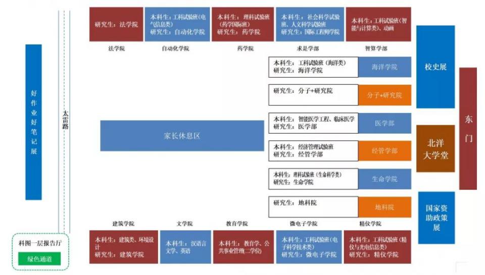 研究生:机械学院、智能与计算学部、建工学院、化工学院、材料学院、环境学院、理学院、文学院、马克思主义学院、教育学院、数学学院的研究生在北洋园校区报到。