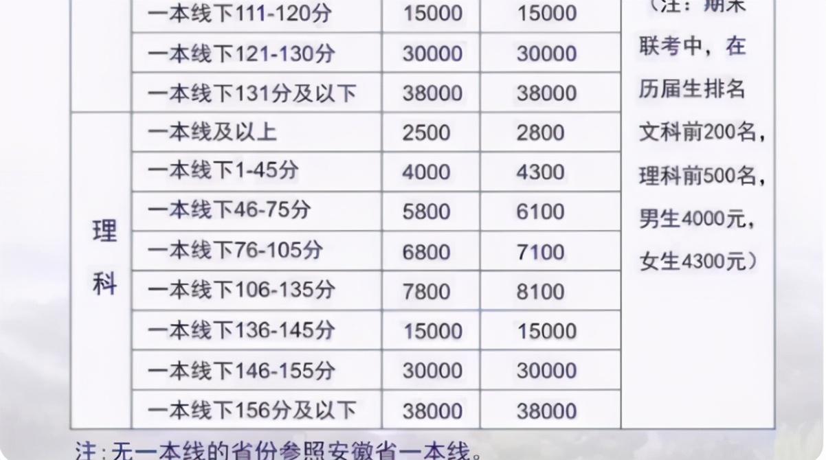 低于一本线131分及以下,那一学期的收费标准就涨到了3.8万,理科考生的情况也是一样的。