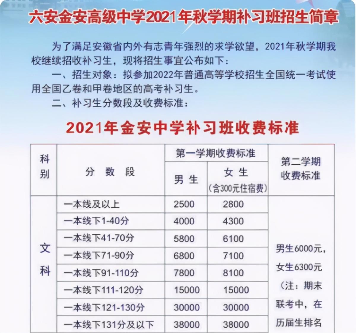 在高考中复读生的占比数量也是不能忽视的,而毛坦厂中学的复读生数量也是比不少高中都会偏多一些的,毛坦厂中学秋季补习班的招收已将开始了,同时收费标准也公布,招收的是拟参加2022高考的考生。