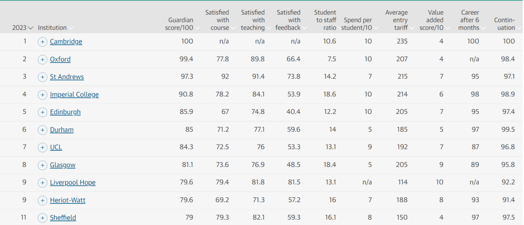 以下是2023年《卫报》整体排行榜~