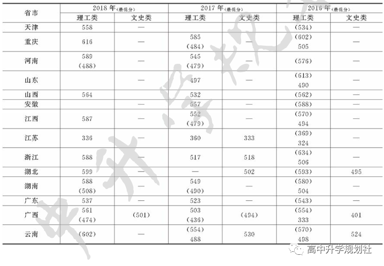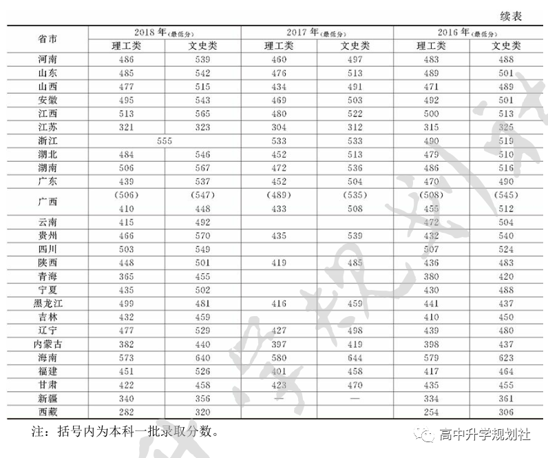▼广西师范大学近几年全国各省市录取分数线