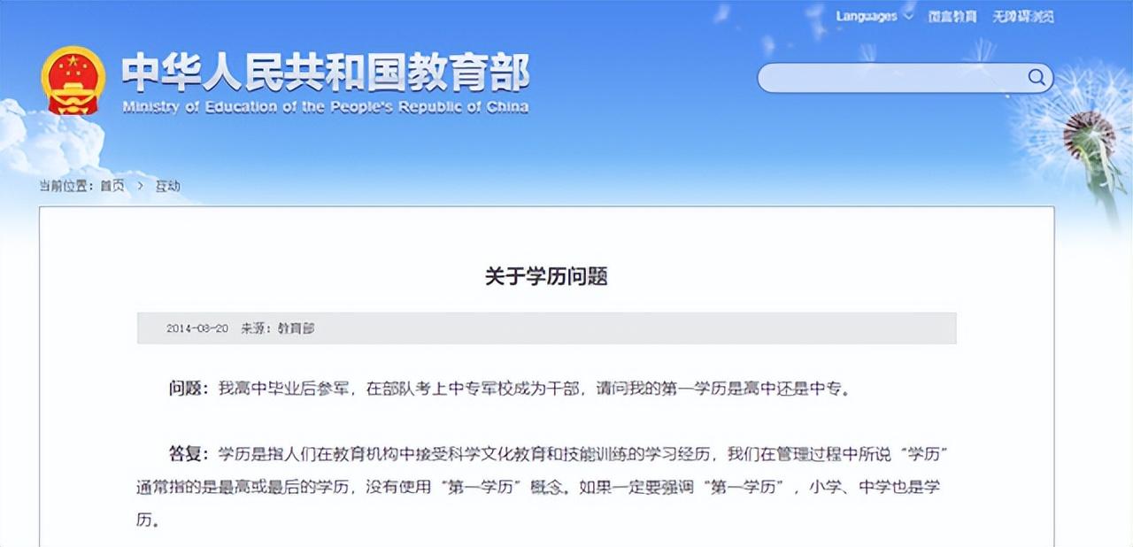 1. 关于第一学历:教育部说法