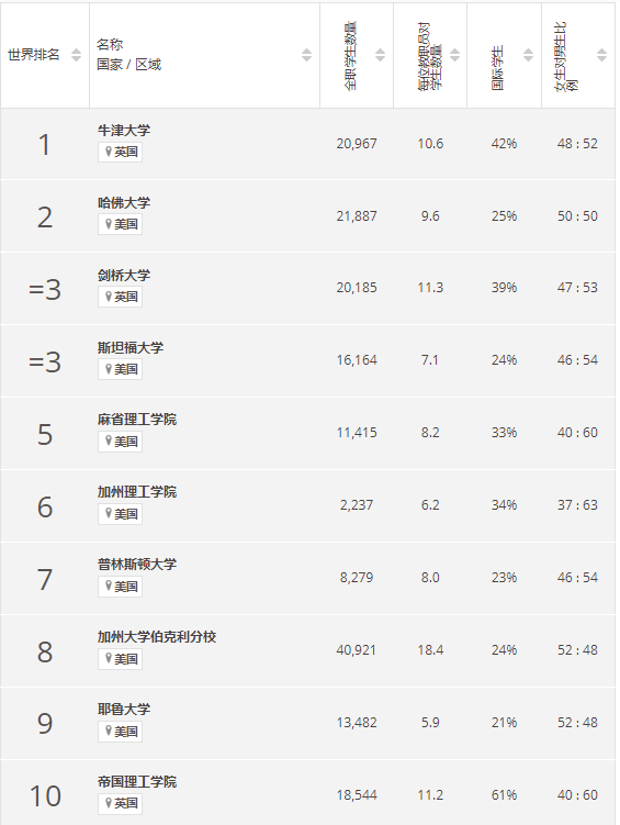 今年的排名中,最引人注目的是,英国牛津大学连续第7年蝉联榜首!