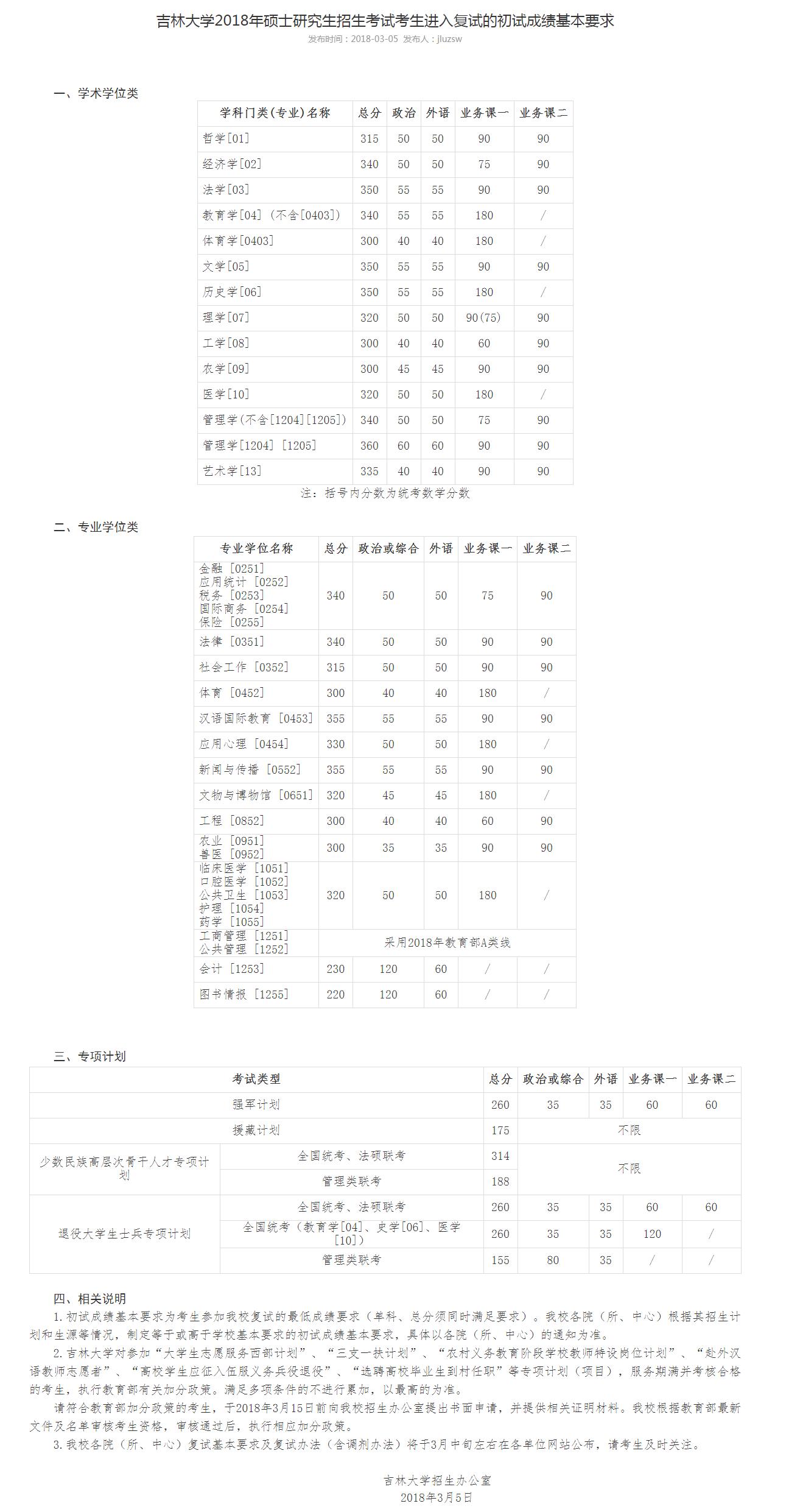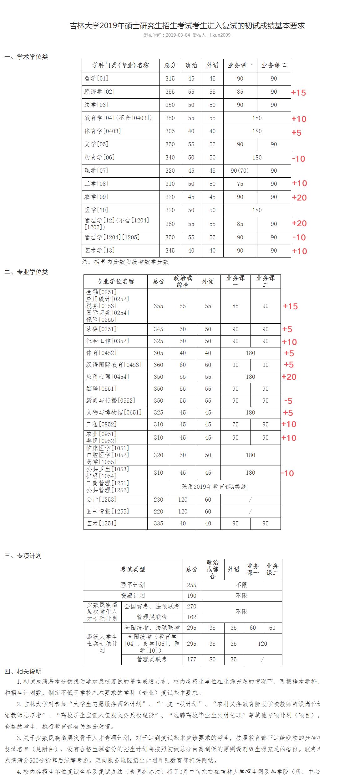 吉林大学于昨日公布2019考研复试基本线,小编看了之后结合2018年的复试线一对比,大部分专业是涨分了,个别专业降了5-10分,想要报考吉林大学的考生抓紧时间准备了,该复试的转呗复试的东西和材料,能调剂的就不要二战,毕竟考研真的不容易。