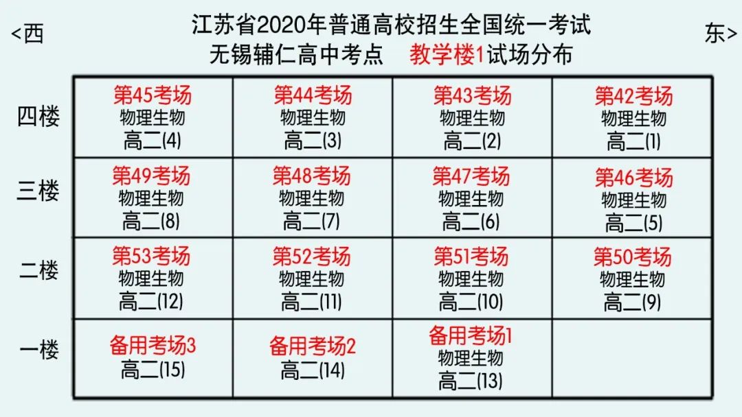 辅仁高中考点试场号为:42—81号,另设7个备用考场。