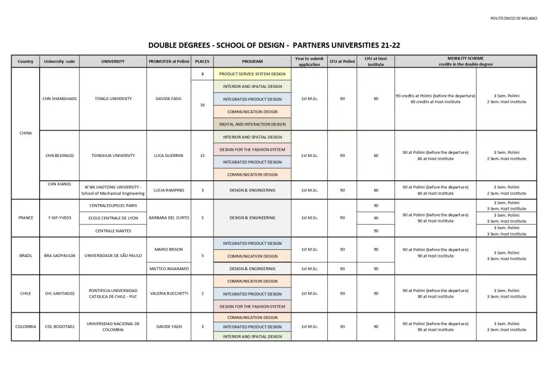 与中国院校合作的部分专业 https://www.design.polimi.it/en/