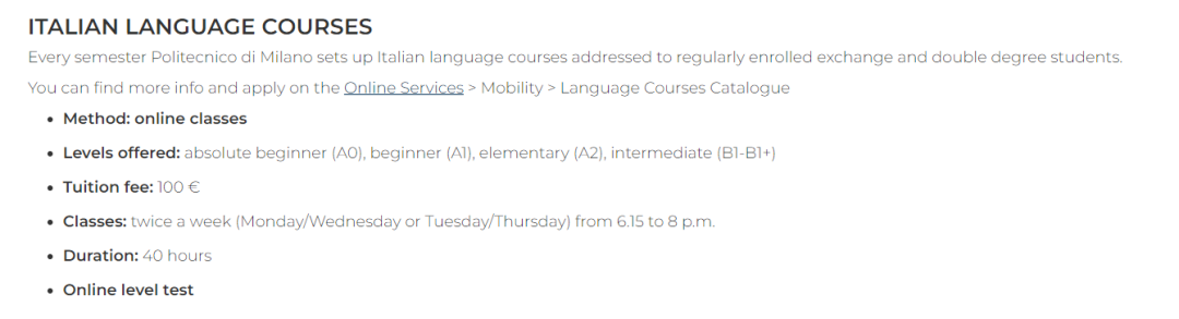 同学们也都应该了解,在米理大部分课程都是英语授课的,而且意大利的英语普及度很高。若同学们还是有些担心,那么同济或米理自己开设的意大利语课程应该可以满足大家的需求。