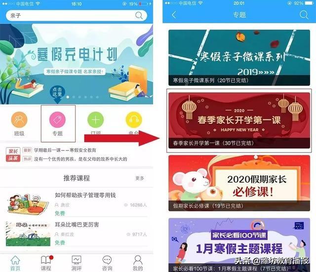 一是“春季开学第一课”,30节精品课程“立体化”指导家长掌握孩子身心发展规律和解决各学段常见问题的方法。“高三寒假公益讲堂”,指导高三家长学子科学从容复习应对高考。二是“抗疫情,防危机”心理防护家庭课程,宗春山教授的5节系列课,让学生孩子们能科学面对疫情,找到学习动力,培养坚强品质。三是“2020假期家长必修课”、“家长必看”系列微课,2月学习习惯主题课程,为新学期孩子健康成长打下坚实基础。四是开展《牵手两代》丛书亲子共读,共同面对成长困惑难题,增强教师、学生、家长之间相互理解信任关系。五是开展系列家庭劳动教育,指导全市超过4万个中小学生家庭,开展系列美食制作课程、植物养护课程、物品整理课程、卫生清洁课程,培养了学生劳动创造美好和付出收获认可的意识。六是开展家庭健康教育,“小手拉大手”引导学生和家长学习预防新型冠状病毒知识,推送正确洗手七步法和正确戴口罩方法视频教程,做好家庭健康生活教育。