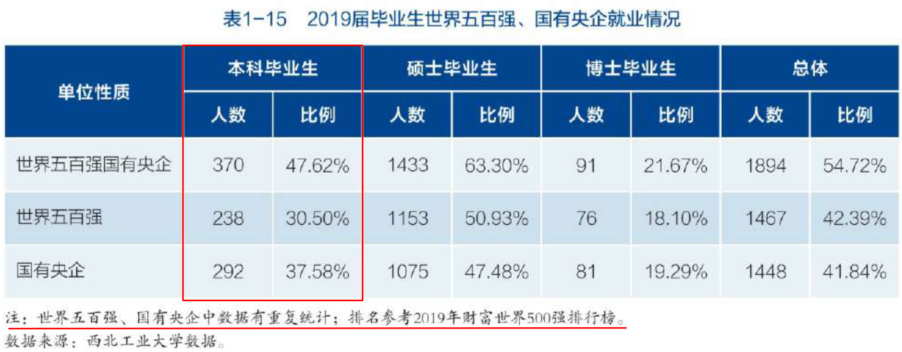 根据签订就业协议形式就业人数统计,西北工业大学2019届本科毕业生到世界500强和国有央企就业的人数达370人,占签约就业总人数的47.32%。