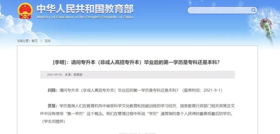 教育部明确说明统招专升本的第一学历是本科的,普通高校全日制专升本按普通全日制本科来对待。