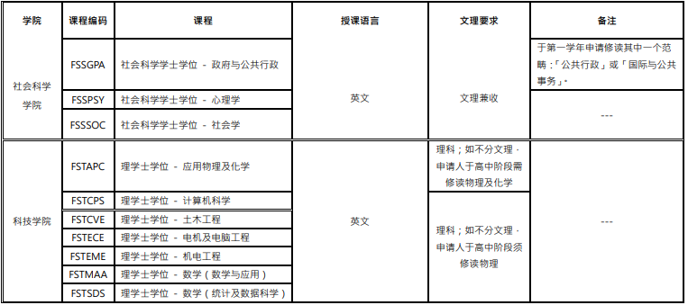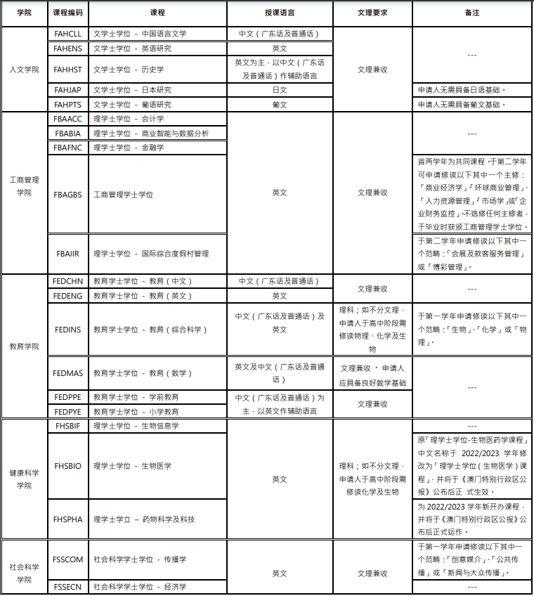 澳门大学多个学院,提供多个本科课程供内地国际生申请。