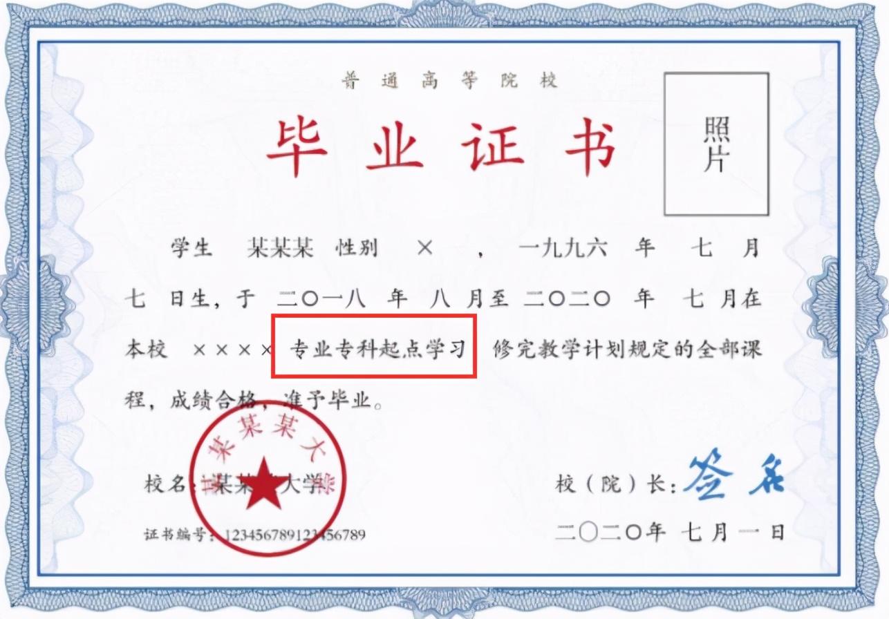 如果通过成人高等教育专升本考上本科,毕业后的毕业证上,会标注“专科起点的本科”,也就意味着你的第一学历是专科,而非本科。