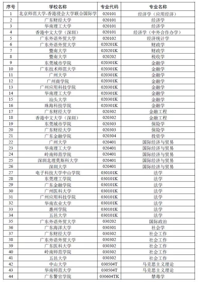 据统计,中山大学、华南理工大学、暨南大学、华南农业大学、华南师范大学、深圳大学、汕头大学、广东工业大学、广东外语外贸大学、广东财经大学、东莞理工学院等高校,均有超过10个专业在公示名单中。