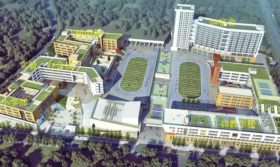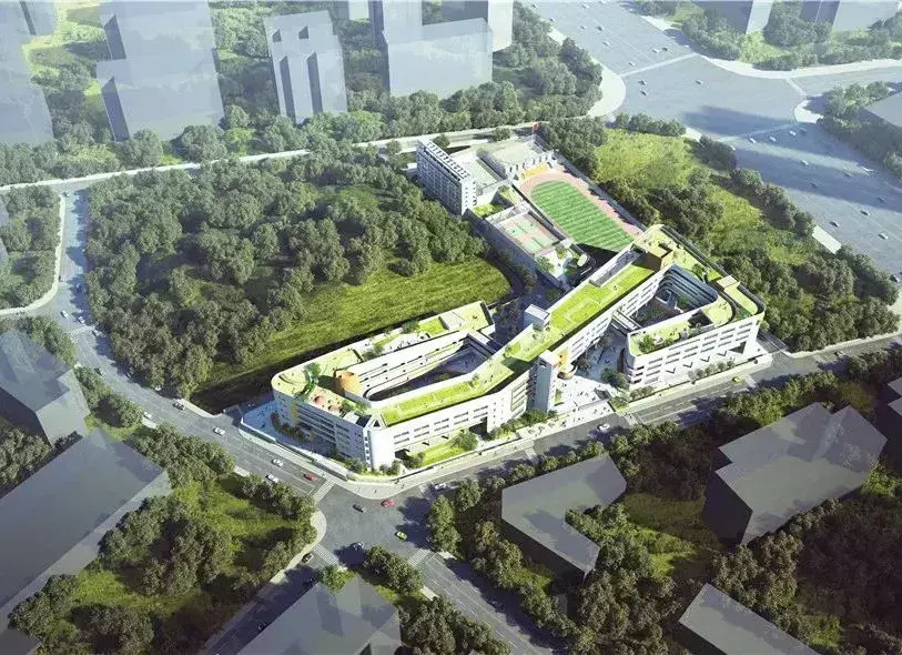校园建筑形体及立面设计延续着深圳外国语学校的设计风格,校园环境优雅,立体绿化和屋面绿化并用,着力打造开放式的绿色校园。