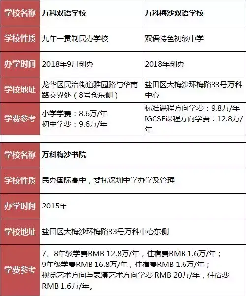 虽说"万科双语学校"和"梅沙双语学校"这两所学校在不仅名字与万科梅沙书院十分相似,就连投资方和教学管理团队也与万科梅沙书院有着千丝万缕的关系。但是,无论是年级的设置还是课程的设置都有着大大的不同。