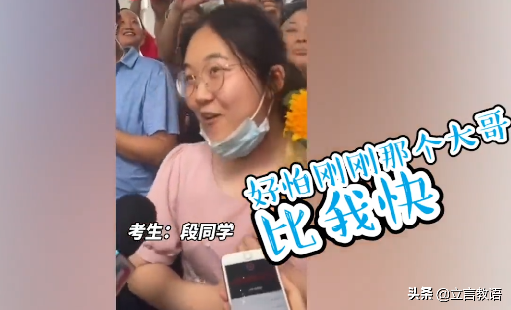 为了能第一个跑出来接受采访,她也是使出了“洪荒之力”,毕竟作为一个女孩子,能够跑赢男生,确实不容易。