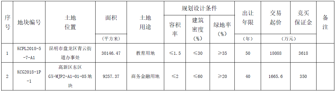 编号为KCPL2018-5-7-A1的教育用地,位于东白沙湖东侧、大华公园天下项目7号地块,占地45.22亩。地块被云南亚德房地产开发有限公司拿下,成交价1.81亿元,土地单价为400万元/亩。