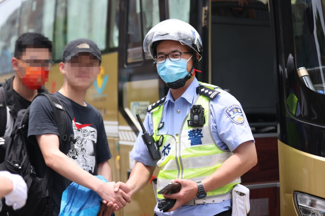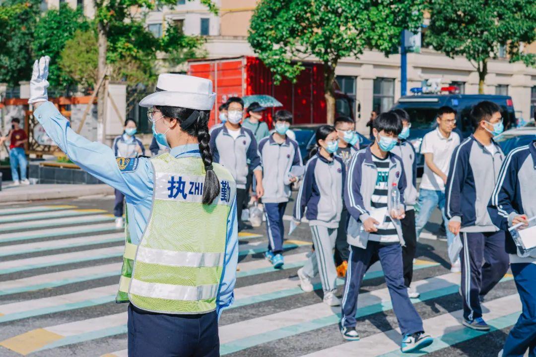 “戴好口罩,保持距离!”6月7日是高考第一天,上午8点不到,浙江省台州市仙居县仙居中学的考点外就已经聚集了许多考生,而正在维持秩序的警察叔叔今年却有些不同。