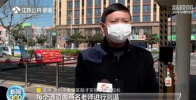 在泰州市姜堰区励才实验学校,校门口用警戒线划分出了多条专用通道,大门入口处还醒目张贴着入校须知。副校长章林告诉记者:“每个通道由两名老师进行测温,预计十分钟之内能够全部进校。”3月30日,这所学校初三年级1673名学生将率先开学。