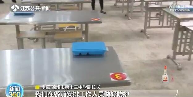 在徐州第十三中学,学校按照学生用餐一人一桌,实行错时错峰用餐,保证学生不密集、不扎堆。