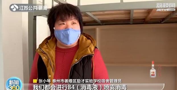 开学后,学生宿舍均为两人一个房间。 每天早晨学生离开宿舍之后和晚上下晚自修之前,宿舍里都会用84消毒液喷雾消毒。
