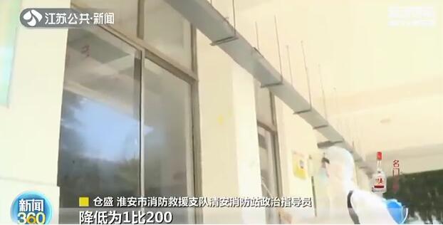 淮安消防部门对清浦中学的教室、卫生间、学生食堂等公共区域进行全方位的防疫消毒。淮安市消防救援支队清安消防站政治指导员仓盛告诉记者:“我们将原有84消毒液1比100的配比降低为1比200,在确保消杀工作的同时,也保证了开学后孩子们的身体健康。”