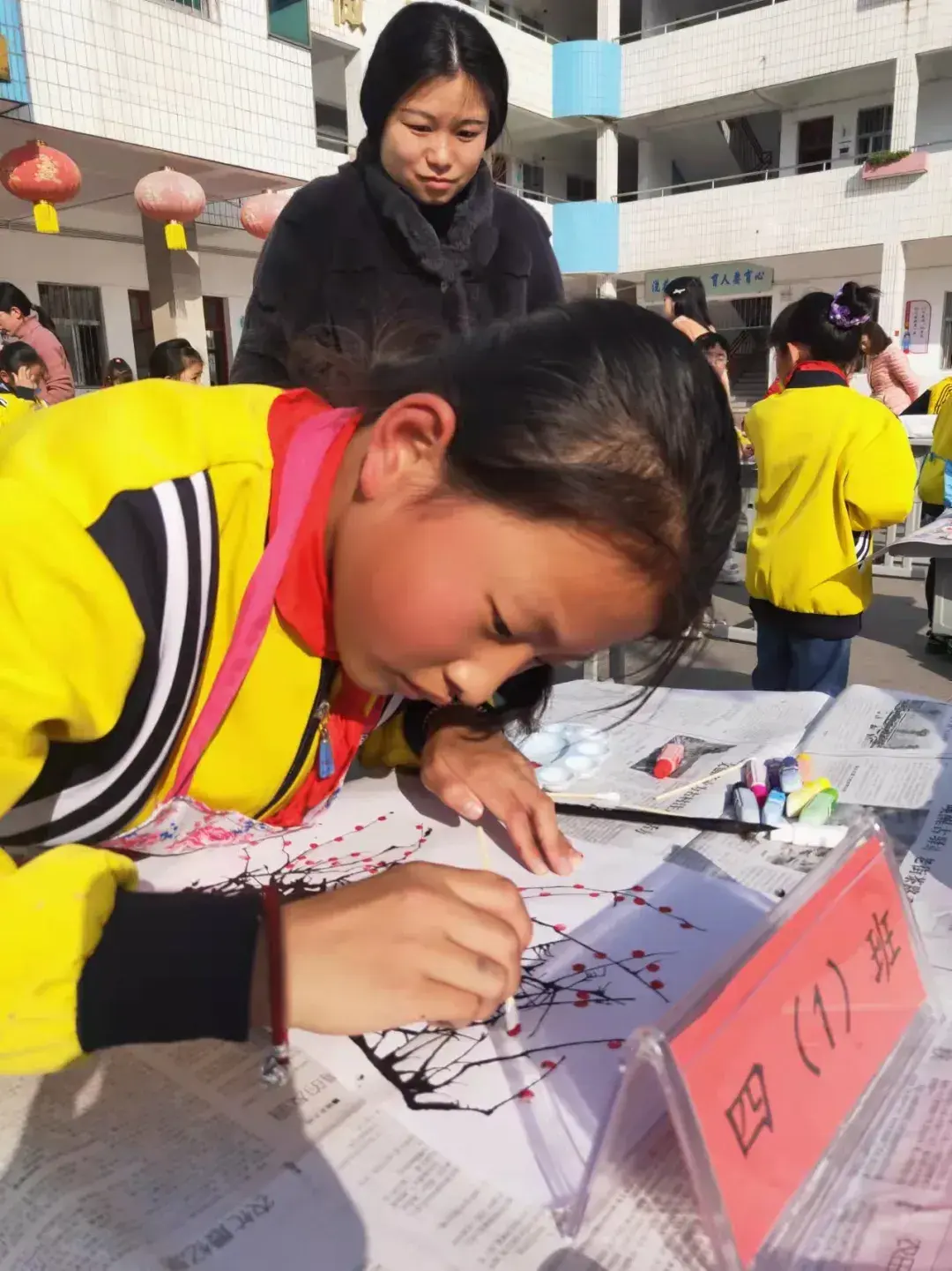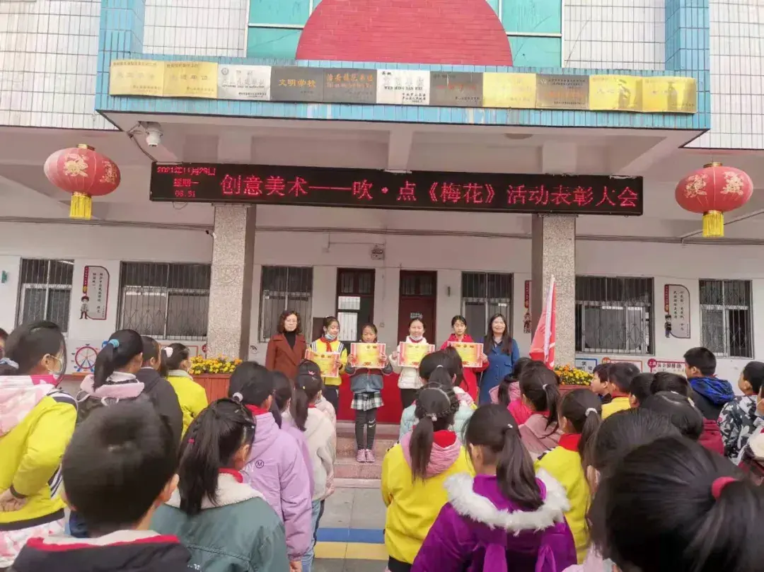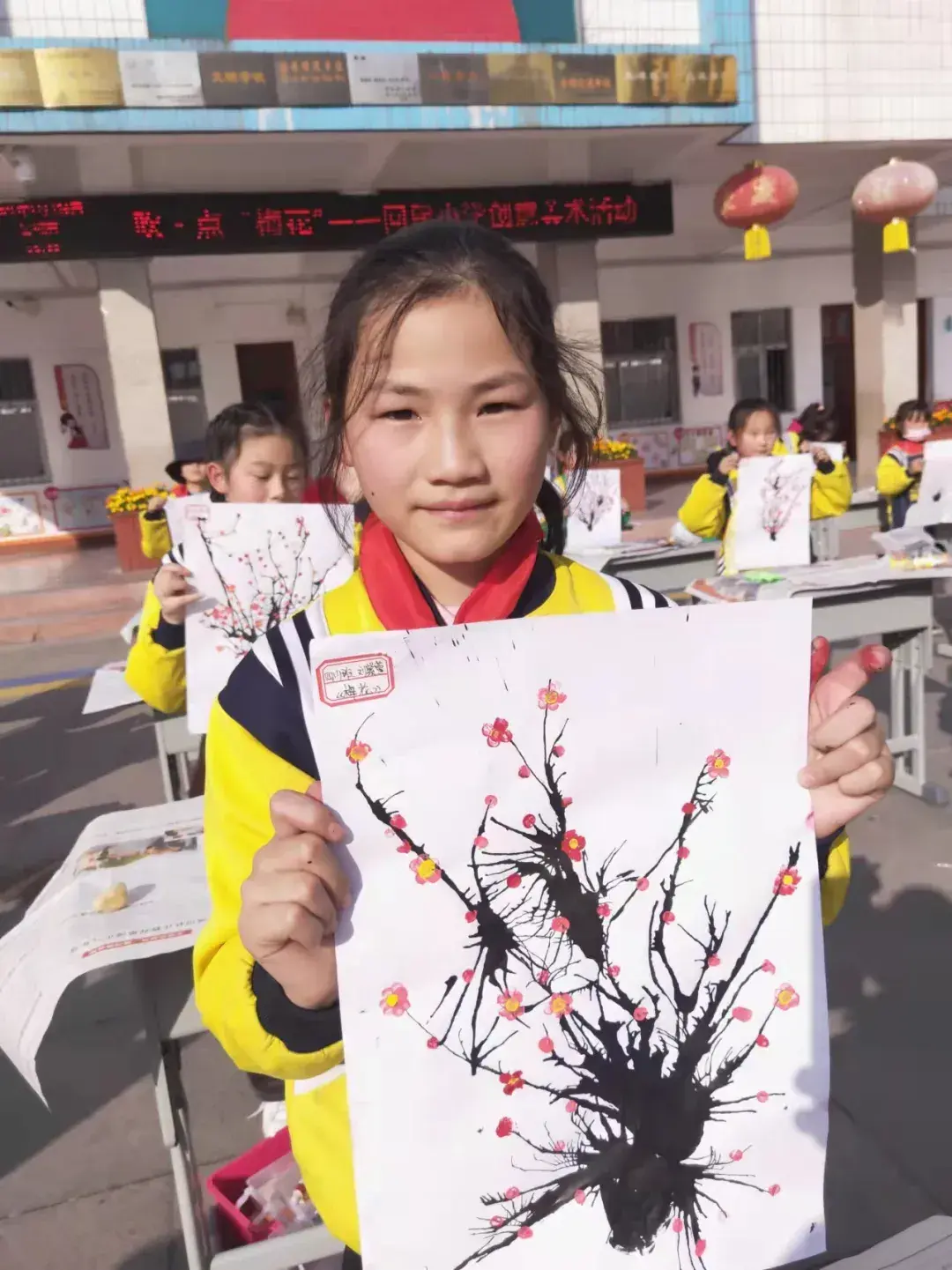 为深入落实“双减”政策,进一步深化教育教学改革,促进学生德智体美劳全面健康发展,结合学校课后延时服务创意美术特色课程,罗山县回民小学于2021年11月26日下午举办创意美术“ 吹·点‘梅花’”活动。
