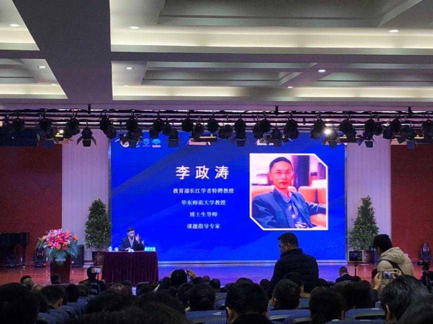 在课题研究推进会上,大会特邀本课题指导专家、教育部长江学者特聘教授、华东师范大学教育学系李政涛教授作"高品质学校建设"专家指导报告。他高度评价课题组"有概念""有理念""有现场""有课堂""有研修"。李教授就现场研修进行了指导,特别介绍了教研活动九步法:专题实践课、专题报告、专题说课、组内评课、提问质疑、团队回应、专题评课、二度反思、教学重构。对高品质教研提出"真""实""特""跨""我""长"六大标准,希望在 "高品质学校建设"课题研究中,要先装"麻袋",再精炼"口袋",最后进"脑袋",把校本研修真正打造为师生""共同照耀""相互超度""相互定义的"精神气象"。
