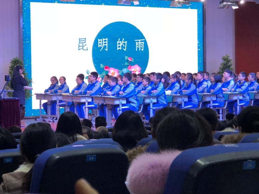 现场,初中语文教研组28位教师展示了她们校本研修的全过程。研修主持人赵维薇首先作了本次研修的背景、主题选择和前期研修过程说明。然后由何柳蓉老师展示研修课例——《昆明的雨》,教研组其他教师作为观察员深入课堂,跟踪了解研修的效果。
