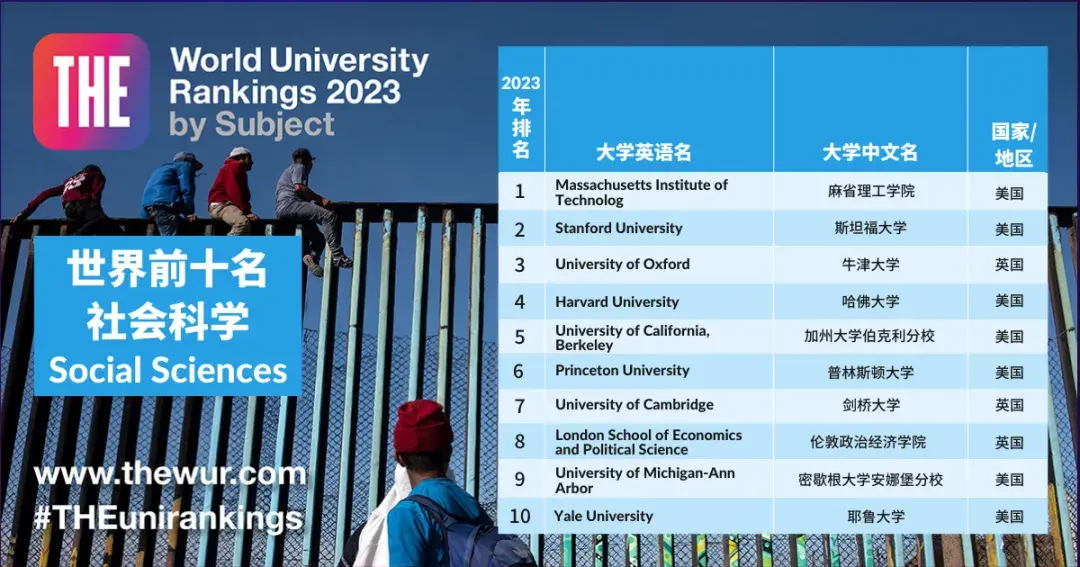 10月25日深夜,泰晤士高等教育官方发布了2023年世界大学学科排名!