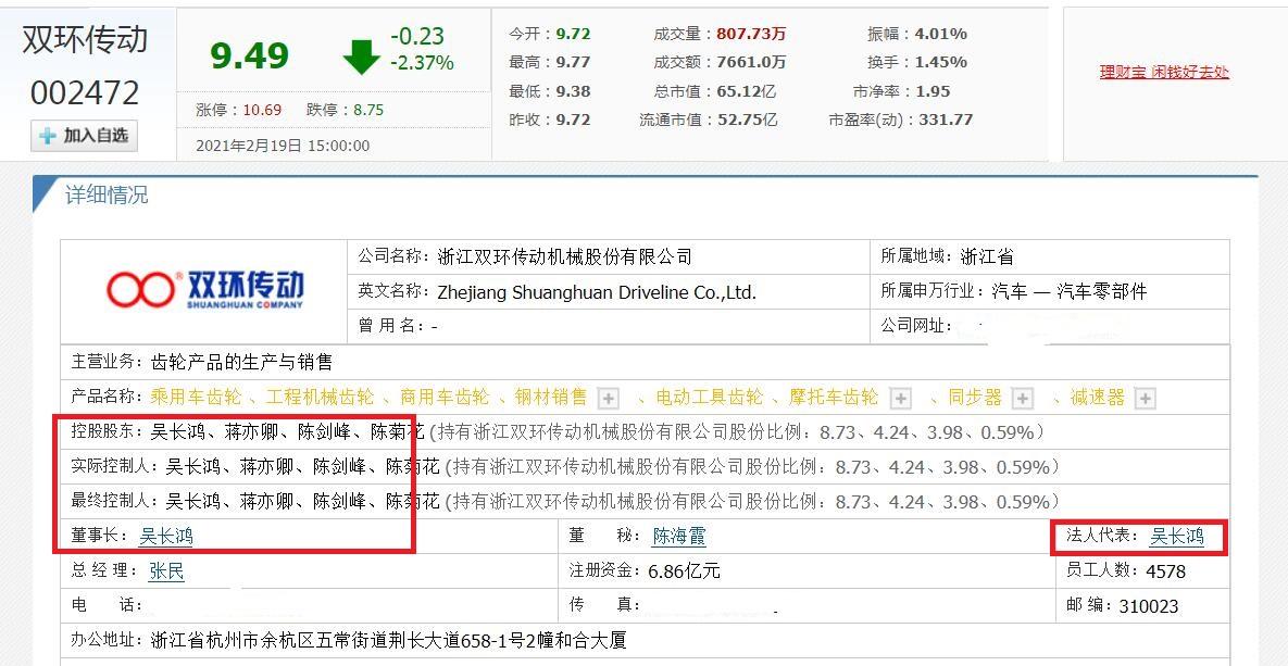 公开资料显示,吴长鸿,1969年12月出生,浙江玉环人,工商管理硕士,资深工程师。现任浙江双环传动机械股份有限公司控股股东、实际控制人、董事长、法人代表,同时担任浙江双环实业股份有限公司董事、玉环县亚兴投资有限公司董事。