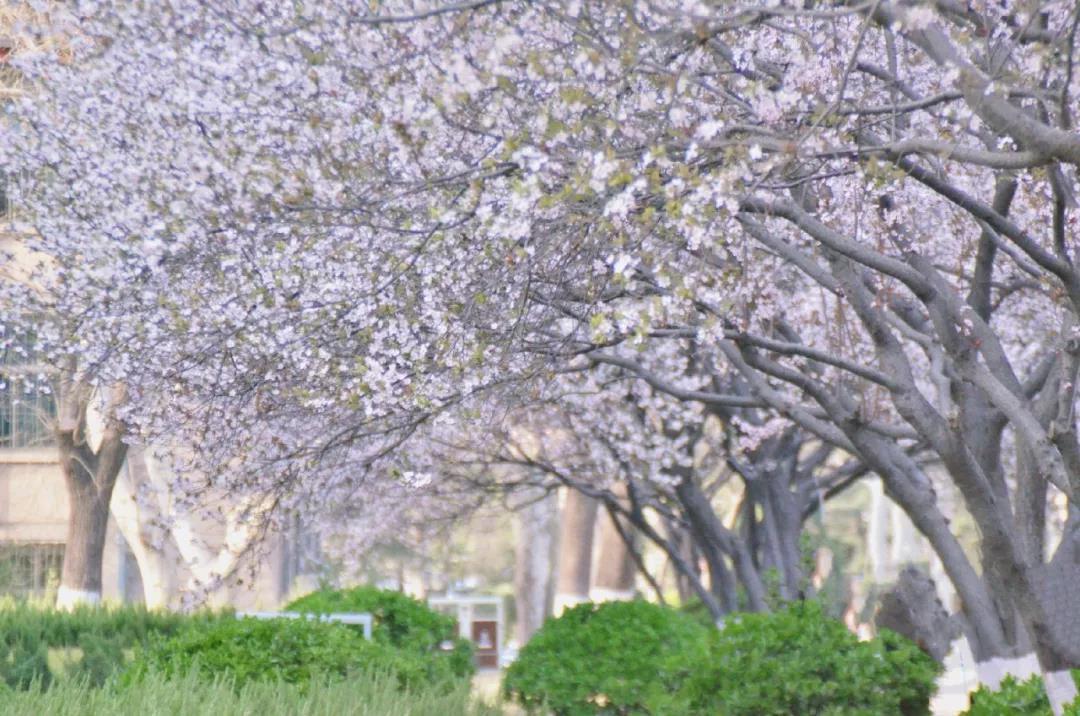 到了三月下旬,校园内芬芳的玉兰、柔美的丁香、娇艳的海棠,尤其是布满登攀东路和西路两侧的数百株紫叶李娇艳盛开,不是樱花却又胜似樱花。春风拂过,落英缤纷。