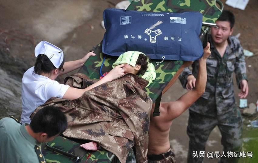 消防官兵小心翼翼地将女孩从废墟中抱起来,在即将抬出废墟的时候,旁边一位细心的救援人员还给小女孩眼睛上盖上了一块布。