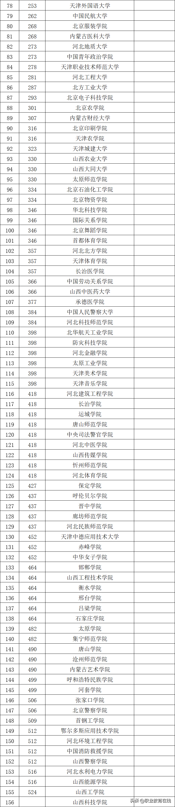 华北地区高职高专排名