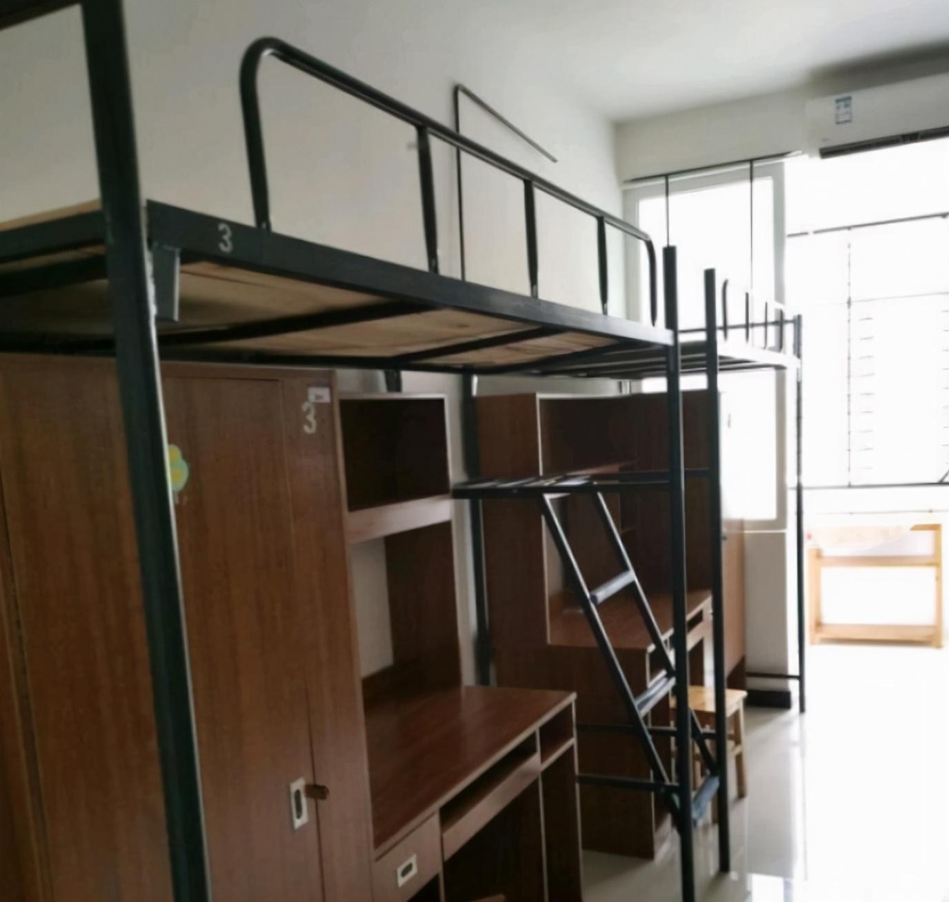 宿舍安排是分校区和专业,金银湖校区基本上都是4人寝,上床下桌,极少部分六人寝,女生都是四人寝,常青校区六人寝较多,但都有独立卫生间和空调