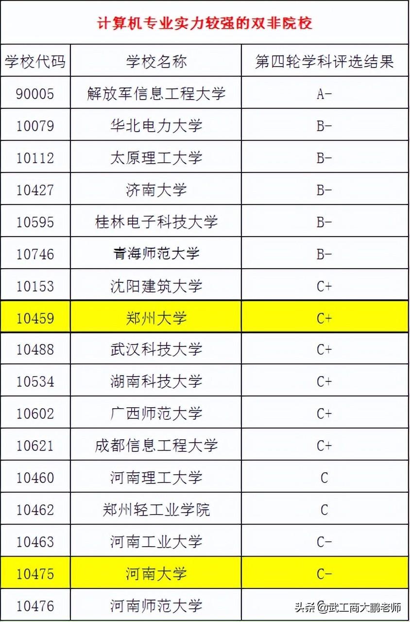 河南高校计算机学科实力整体不高,除了信大之外表现最好的郑大仅C+档次;