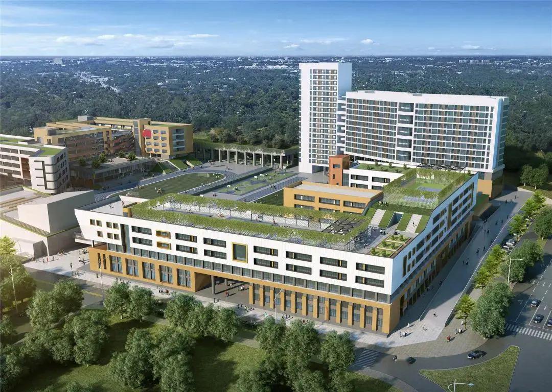 深外龙华高中部位于深圳市中轴核心龙华区民治街道,规划60个教学班,学位3000个,占地面积36000㎡。
