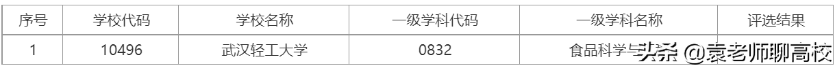在第四轮学科评估中,武汉轻工大学只有一个学科上榜,其中食品科学与工程被评为B-!