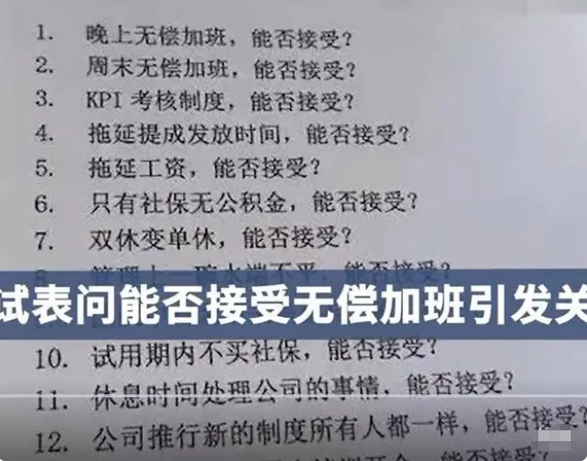 但是一旦在表格上表示可以接受,那么入职之后等待员工的,可能就是无休止的“压榨和剥削”。