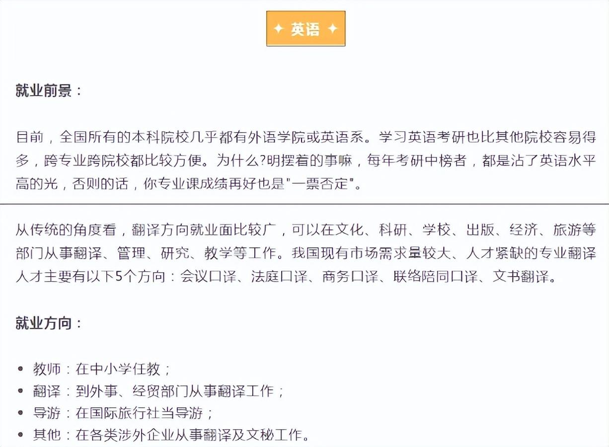 大学生毕业后可以选择成为教师,成为翻译也是就业偏广的,外事、经贸部门和外资企业都需要翻译人才,当国际导游也是可以的。