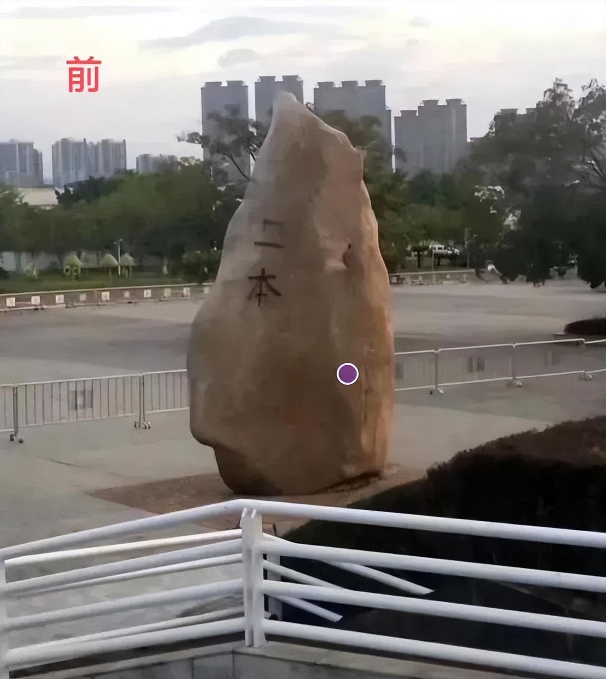 但不知道在什么时候,有学生发现,在这块石头的背面,有人用黑色的颜料写上“二本”两个字。