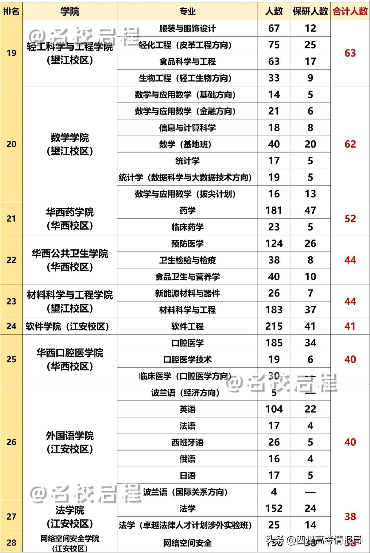 除此以外,由于当下考研竞争日益激烈,不少考生在进行院校选择时也会更倾向哪些保研率高的院校,想考川大的可以参考下文23届川大各专业保研情况: