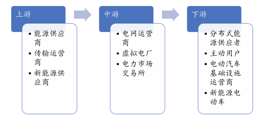 虚拟电厂的产业链结构由上游基础资源、中游系统平台、下游电力需求方构成。