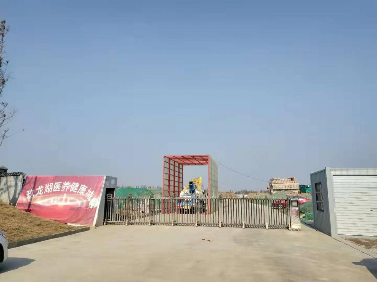 但是往西走一小段,就能看到“玖龙湖医养健康城”的工地大门,施工机械已经进场,也铺了一小段水泥路。