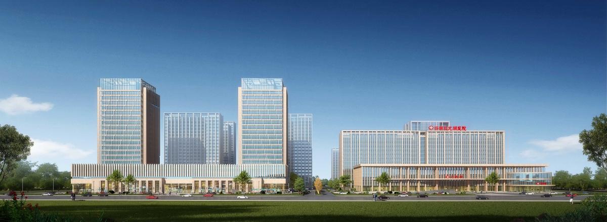 玖龙湖医养健康城由江苏润福实业有限公司投资建设,定位为“医、康、养、商”一体化的综合体,项目用地总面积120303㎡,总建筑面积404333.24㎡,总投资约22亿元,是扬州首家真正做到医养结合完整业态的项目。预计2021年12月投用。