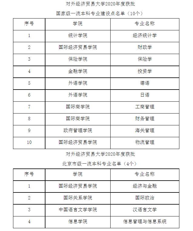 对外经济贸易大学的看点则在于:贸大新增各级一流本科18个,覆盖在招本科专业83%以上。具体来说,截至目前该校54个本科专业中,国家级一流本科专业建设点总量达28个,覆盖全部在招本科专业的50%。另获批北京市级一流本科专业共17个,北京市重点建设一流专业2个。