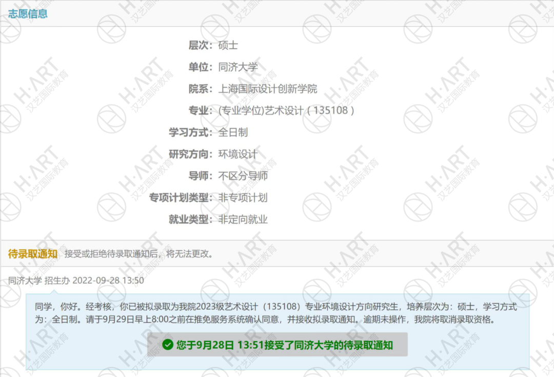 总之,最后在大家的帮助下还是成功赶上了,而且非常巧合的是国美的复试通知和同济的补录取通知是同一天来的!天哪幸运之神一天内眷顾我两次,当时都感觉世界似乎又恢复了色彩……