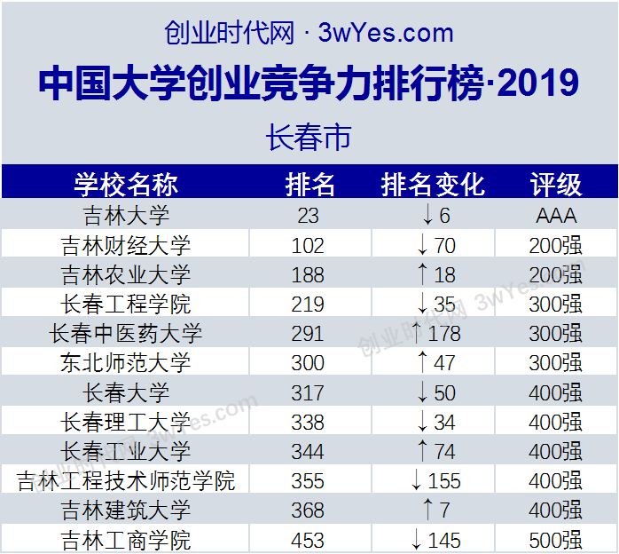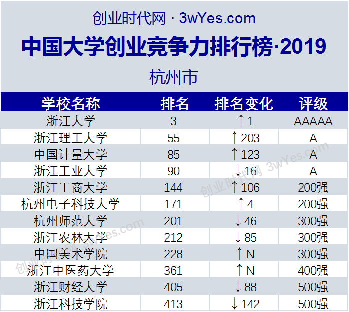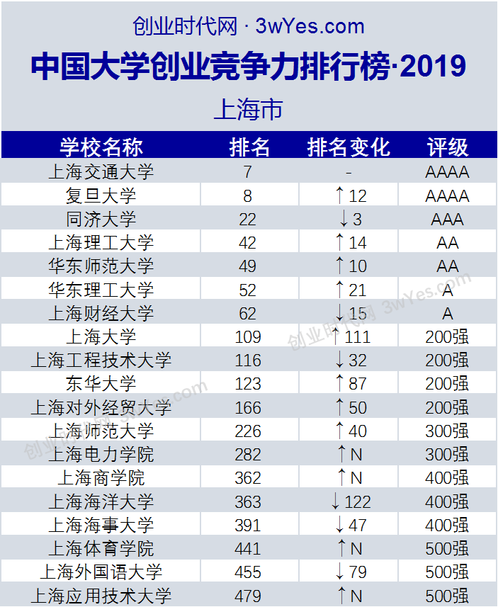 2019年11月,“中国大学创业竞争力排行榜500强·2019”榜单由创业时代网正式发布。本次是创业时代网连续第五年发布中国大学创业竞争力榜单,旨在反映中国大学创业竞争力水平。